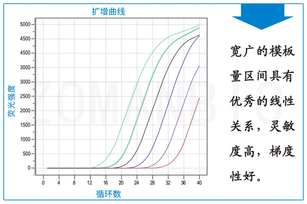 本產(chǎn)品是染料法(SYBR GreenⅠ)實(shí)時(shí)熒光定量PCR的預(yù)混液。新一代的高效熱啟動(dòng)酶,配合針對(duì)qPCR優(yōu)化的PCR buffer與增強(qiáng)劑,使本產(chǎn)品特異性強(qiáng),靈敏度高,在寬廣的模板濃度范圍可得到良好的標(biāo)準(zhǔn)曲線,定量準(zhǔn)確,重復(fù)性好,可信度高。