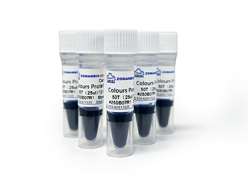 本產(chǎn)品由10-180 kDa的10種純化的天然蛋白混合而成,其中70 kDa為橙紅色蛋白條帶,10 kDa為綠色蛋白條,方便判斷各個(gè)條帶的準(zhǔn)確位置。產(chǎn)品適合作為SDS-PAGE電泳時(shí)變性蛋白樣品的分子量參照,并可實(shí)時(shí)觀察蛋白樣品的電泳分離狀況,也可用于檢測Western blot的轉(zhuǎn)膜效率。由于共價(jià)結(jié)合的染料會(huì)影響蛋白質(zhì)分子的電泳遷移率,本產(chǎn)品僅適于粗略地估計(jì)目的蛋白樣品的分子量。