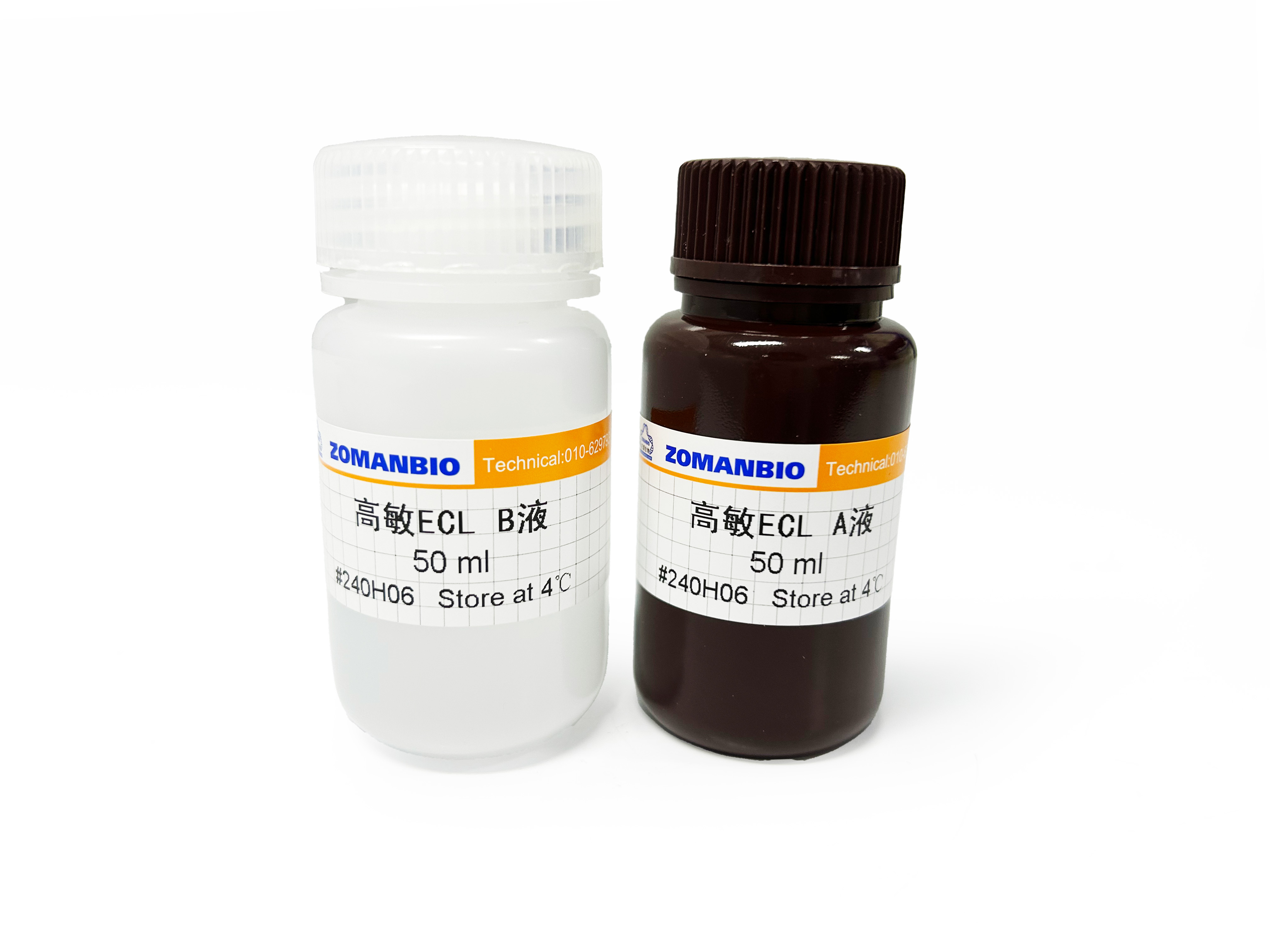 ECL(enhanced chemiluminescence)發(fā)光液是基于魯米諾(Luminol)的新一代增強(qiáng)型化學(xué)發(fā)光底物試劑,即辣根過(guò)氧化物酶(HRP)化學(xué)發(fā)光底物液,是目前WB檢測(cè)中最常用高靈敏的顯色試劑。
